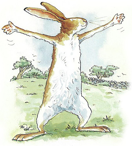большого зайца за длинные-длинные уши. Он хотел точно знать, что большой заяц